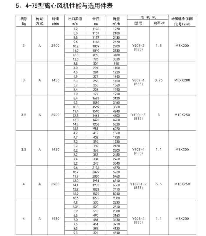 一、4-72(B4-72)、4-79(4-2*79)離心風機